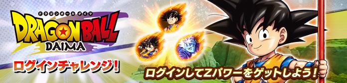 期間中、毎日ログインして「ドラゴンボールDAIMA ログインチャレンジ!」に挑戦しよう!ドラゴンボールDAIMA キャラクターのZパワーをゲットできるチャンスだ!